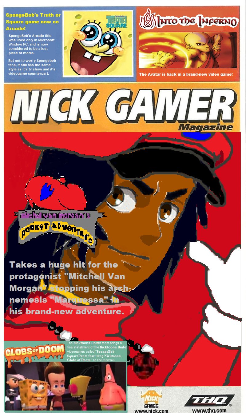 Mitchell Van Morgan on the Nick Gamer Magazine cover. It's a good advertisement that won't be taken down lightly but Mitchell, Arnold & SpongeBob came along way to make very well-planned advertisements for all ages