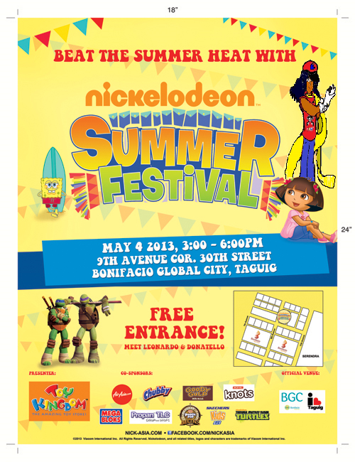 In May 4, 2013, Mitchell Van Morgan tags along with SpongeBob, Dora and the Ninja Turtles at the Nickelodeon Summer Festival in the Bonifacio Global City, Phillipines as the festivities begin with radical Nickelodeon power.